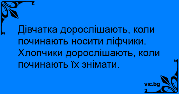 Дівчатка дорослішають, коли починають носити ліфчики. Хлопчики дорослішають, коли починають їх знімати.