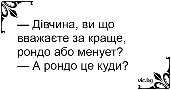 — Дівчина, ви що вважаєте за краще, рондо або менует?