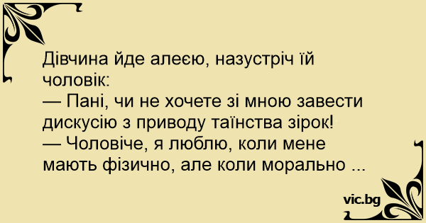— Чоловіче, я люблю, коли мене мають фізично, але коли морально ...