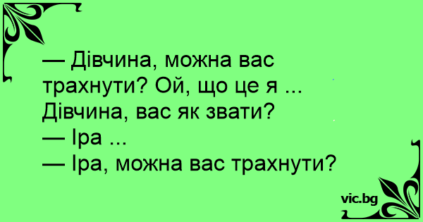 — Дівчина, можна вас трахнути? Ой, що це я ... Дівчина, вас як звати?