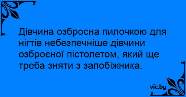 Дівчина озброєна пилочкою для нігтів небезпечніше дівчини озброєної пістолетом, який ще треба зняти з запобіжника.