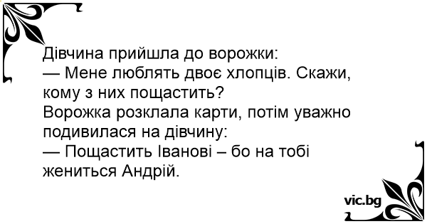 — Пощастить Іванові – бо на тобі жениться Андрій.