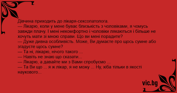 — Та Ви що ... я ж лікар, я не можу ... Ну, хіба тільки в якості наукового експерименту ...