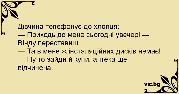 — Приходь до мене сьогодні увечері — Вінду переставиш.