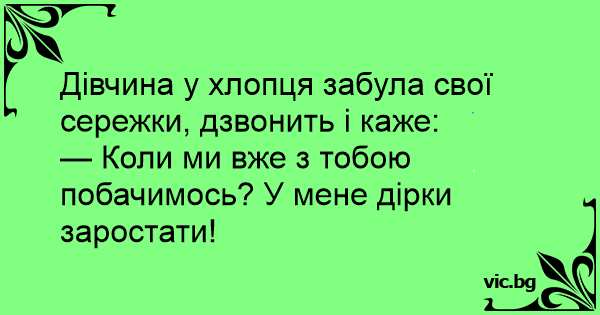 Дівчина у хлопця забула свої сережки, дзвонить і каже: