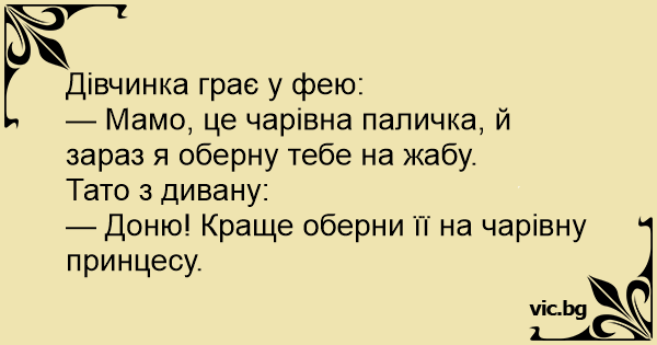 — Мамо, це чарівна паличка, й зараз я оберну тебе на жабу.