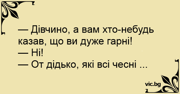 — Дівчино, а вам хто-небудь казав, що ви дуже гарні!