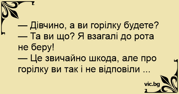 — Це звичайно шкода, але про горілку ви так і не відповіли ...