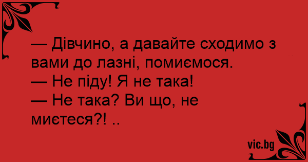 — Дівчино, а давайте сходимо з вами до лазні, помиємося.