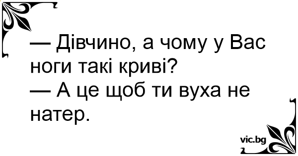 — Дівчино, а чому у Вас ноги такі криві?