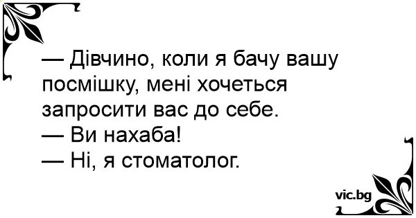 - Valahányszor meglátom önt mosolyogni, asszonyom, mindig arra gondolok, hogy fel kellene csábítanom a lakásomra. - Nocsak, nocsak! Ekkora nagy nőcsábász? - Nem asszonyom, fogorvos vagyok.