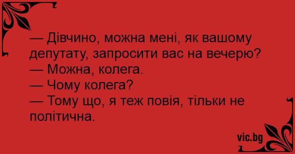 — Дівчино, можна мені, як вашому депутату, запросити вас на вечерю?