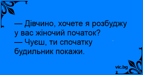 — Чуєш, ти спочатку будильник покажи.