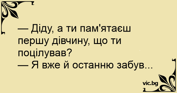 — Діду, а ти пам'ятаєш першу дівчину, що ти поцілував?