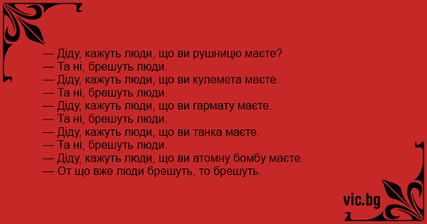 — Діду, кажуть люди, що ви кулемета маєте.