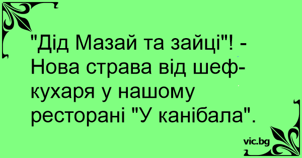 "Дід Мазай та зайці"! - Нова страва від шеф-кухаря у нашому ресторані "У канібала".