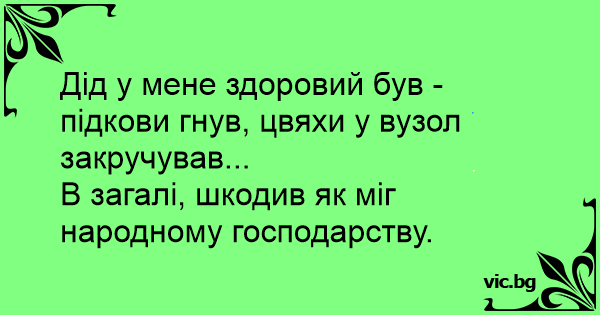 Дід у мене здоровий був - підкови гнув, цвяхи у вузол закручував...