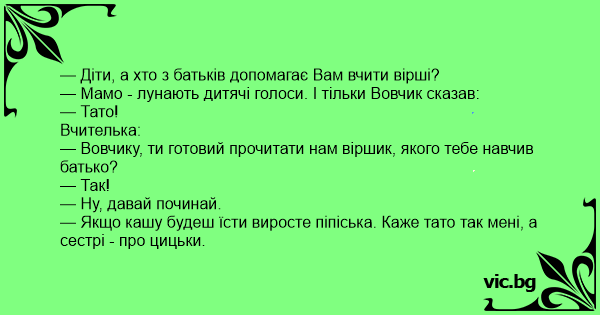 — Вовчику, ти готовий прочитати нам віршик, якого тебе навчив батько?
