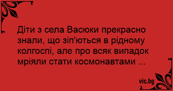 Діти з села Васюки прекрасно знали, що зіп'ються в рідному колгоспі, але про всяк випадок мріяли стати космонавтами ...