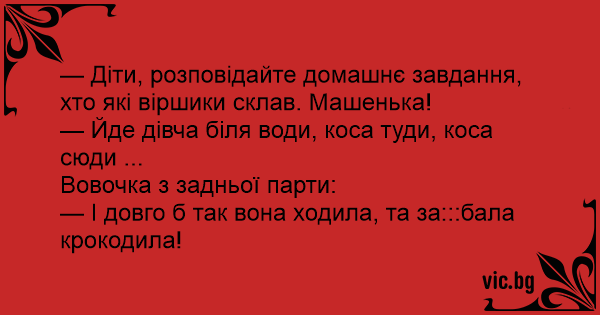 — Діти, розповідайте домашнє завдання, хто які віршики склав. Машенька!