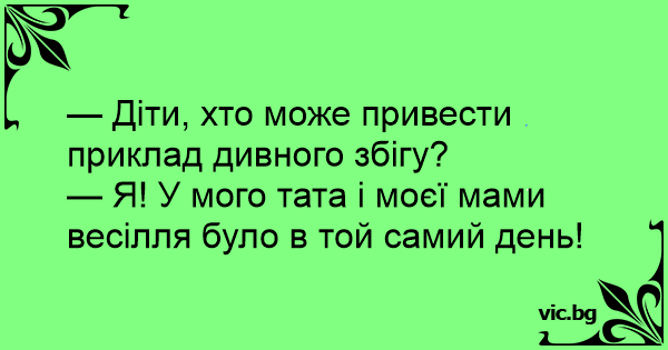 — Діти, хто може привести приклад дивного збігу?