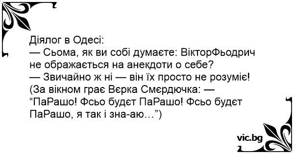 — Сьома, як ви собі думаєте: ВікторФьодрич не ображається на анекдоти о себе?