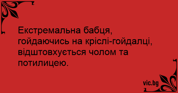 Екстремальна бабця, гойдаючись на кріслі-гойдалці, відштовхується чолом та потилицею.