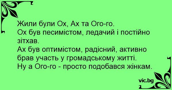 Жили були Ох, Ах та Ого-го.
