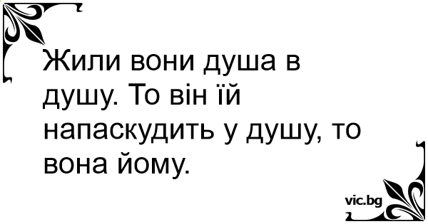 Жили вони душа в душу. То він їй напаскудить у душу, то вона йому.