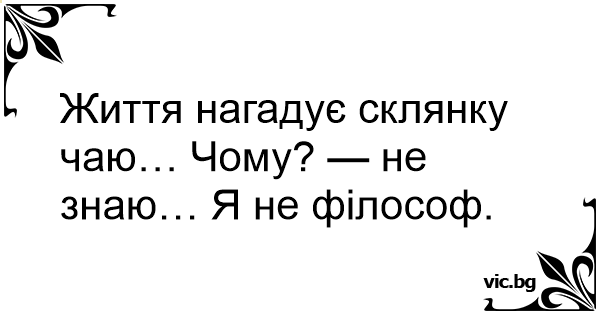 Життя нагадує склянку чаю… Чому? — не знаю… Я не філософ.