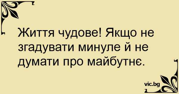 Життя чудове! Якщо не згадувати минуле й не думати про майбутнє.