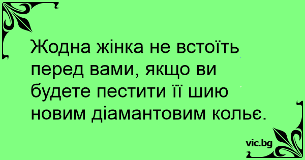 Жодна жінка не встоїть перед вами, якщо ви будете пестити її шию новим діамантовим кольє. 0 0 0 Анекдоти про Жінок і Чоловіків