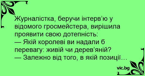 Журналістка, беручи інтерв’ю у відомого гросмейстера, вирішила проявити свою дотепність: