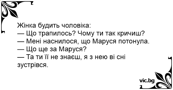 — Та ти її не знаєш, я з нею ві сні зустрівся.