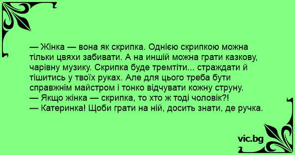 — Якщо жінка — скрипка, то хто ж тоді чоловік?!