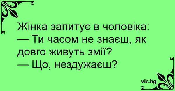 - Любий, ти не знаєш, скільки живуть змії? - А що, ти погано себе почуваєш?
