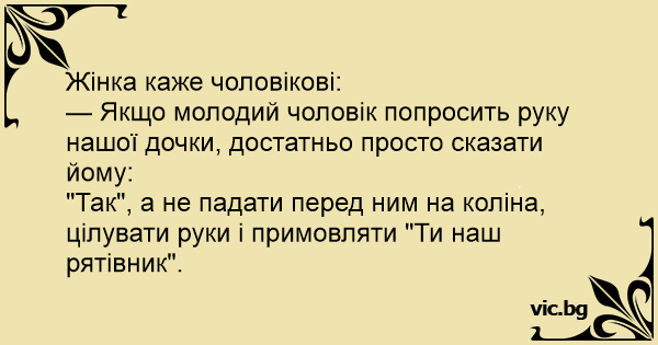 — Якщо молодий чоловік попросить руку нашої дочки, достатньо просто сказати йому:
