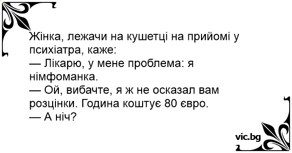 — Ой, вибачте, я ж не осказал вам розцінки. Година коштує 80 євро.