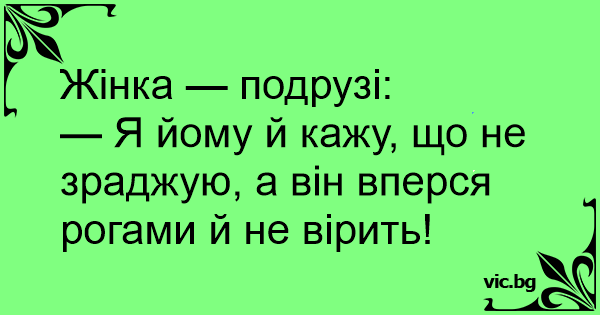 — Я йому й кажу, що не зраджую, а він вперся рогами й не вірить!