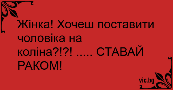 Жінка! Хочеш поставити чоловіка на коліна?!?! ..... СТАВАЙ РАКОМ!