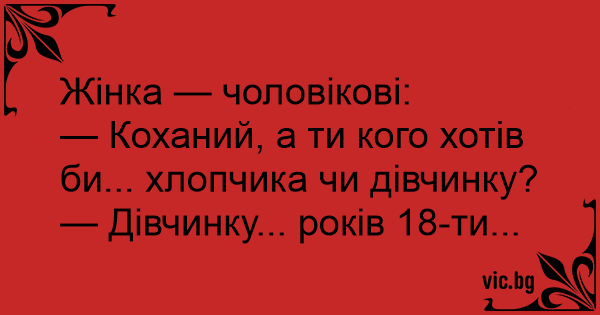 — Коханий, а ти кого хотів би... хлопчика чи дівчинку?