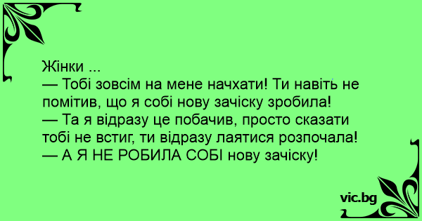 — Тобі зовсім на мене начхати! Ти навіть не помітив, що я собі нову зачіску зробила!