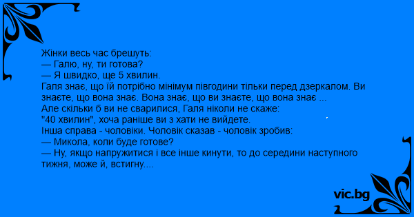 Галя знає, що їй потрібно мінімум півгодини тільки перед дзеркалом. Ви знаєте, що вона знає. Вона знає, що ви знаєте, що вона знає ...