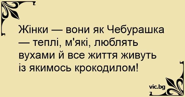 Жінки — вони як Чебурашка — теплі, м'які, люблять вухами й все життя живуть із якимось крокодилом!