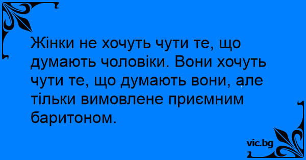 Жінки не хочуть чути те, що думають чоловіки. Вони хочуть чути те, що думають вони, але тільки вимовлене приємним баритоном.