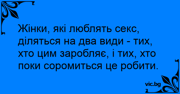 Жінки, які люблять cekc, діляться на два види - тих, хто цим заробляє, і тих, хто поки соромиться це робити.