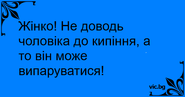 Жінко! Не доводь чоловіка до кипіння, а то він може випаруватися!