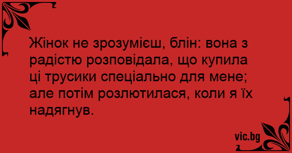 Жінок не зрозумієш, блін: вона з радістю розповідала, що купила ці трусики спеціально для мене; але потім розлютилася, коли я їх надягнув.
