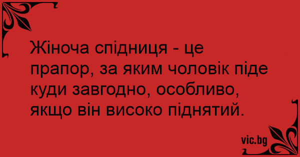 Жіноча спідниця - це прапор, за яким чоловік піде куди завгодно, особливо, якщо він високо піднятий.