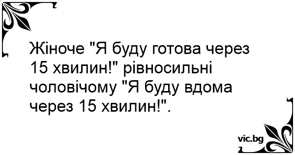 Жіноче "Я буду готова через 15 хвилин!" рівносильні чоловічому "Я буду вдома через 15 хвилин!".